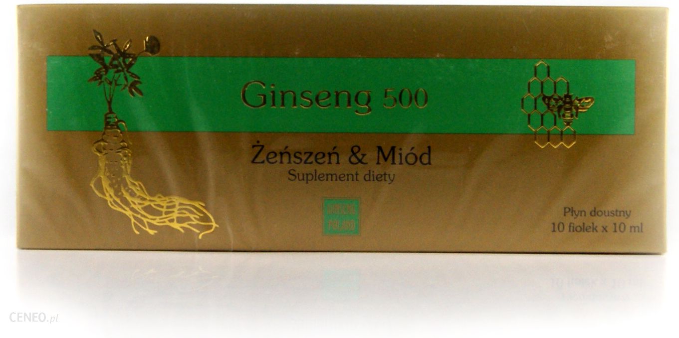 Żeń-szeń zawarty w suplemencie wspiera układ odpornościowy, pomaga przeciwdziałać zmęczeniu. Flawonoidy zawarte w miodzie przyczyniają się do równowagi mikrobiologicznej w narządach i tkankach.Zastosowanie: suplementacja diety w składniki aktywne preparatu.Zalecane spożycie: jeden raz dziennie jedna fiolka preparatu – wstrząsnąć i zmieszać z niewielką ilością wody letniej. Najlepiej zażywać przed pierwszym posiłkiem.Składniki: miód (honey), Panax Ginseng – sproszkowany korzeń żeń-szenia, woda oczyszczona.1 fiolka 10ml zawiera: miód 2500mg, Panax Ginseng – sproszkowany korzeń żeńszenia 500mg, woda oczyszczona do 10ml.Przeciwwskazania: nie zaleca się stosowania u osób z nadciśnieniem tętniczym, uczulonych na którykolwiek ze składników, kobiet będących w ciąży, karmiących oraz u dzieci.Ważne wskazówki:Nie należy przekraczać zalecanej dziennej porcji.Suplement diety nie może być stosowany jako substytut (zamiennik) zróżnicowanej diety.Zrównoważony sposób żywienia i prawidłowy tryb życia jest ważny dla funkcjonowania organizmu człowieka.Przechowywać w suchym miejscu w temperaturze pokojowej, w sposób niedostępny dla małych dzieci.Mogące powstać lekkie zmętnienie oraz nieznaczny osad są naturalnym zjawiskiem w produktach roślinnych.Producent:China Harbin Yeekong Herb Inc.No. 39 Huanghai Road, Haping Area,Harbin, ChinyImporter:Ginseng Poland Sp.J.Złota 4562-800 Kalisz