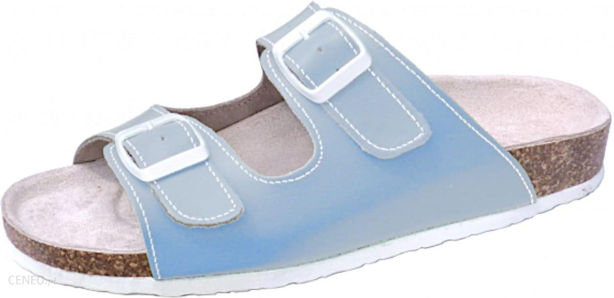 Klapki medyczne męskie niebieskieWysokiej jakości komfortowe obuwie wykonane ze skóry naturalnej pokrytej membraną. Profilowane ortopedycznie z antypoślizgowymi podeszwami dedykowane Panom pracującym na oddziałach szpitalnych w przychodniach domach opieki i innych placówkach medycznych.Opis techniczny:wierzch – skóra bydlęca naturalna wykończona powłoką odporną na mycie regulacja tęgości 2 paski wyściółka – skóra naturalna welurowa spód – styrogum biały 8mm o urzeźbieniu antypoślizgowym wkład korkowo-gumowy – o głębokim profilu ortopedycznym. sposób montażu – klejony termicznieObuwie atestowane: PN-EN ISO 20 347 : 2012Dostępne rozmiary od 42 do 47